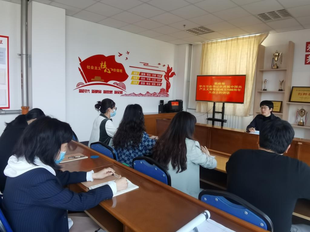 为迎接党的二十大胜利召开,庆祝中国共青团成立100周年,激发青年员工爱党爱团的热情,铭记历史,弘扬“五四”精神,展示积极向上的青春风采。5月12日下午,思政部在A0-A501召开学习习总书记在庆祝共青团成立100周年大会上的重要讲话精神专题会。全体教师参会,会议由教研室主任张玉萍主持。