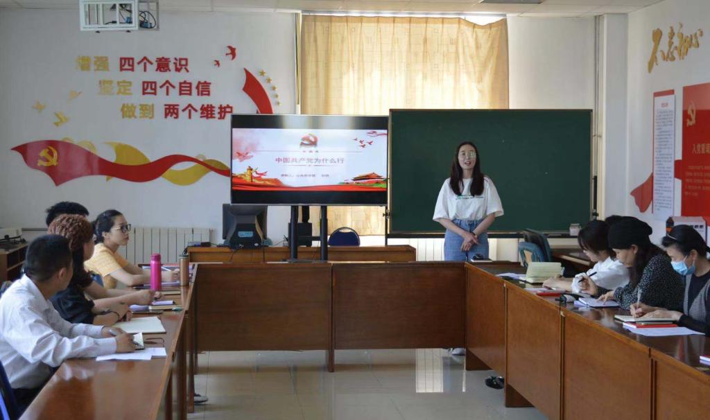 思政部教师孙玥以《中国共产党为什么能》为党课主题,沿着历史逻辑,从“旧民主主义革命失败”“民族危亡呼唤中国共产党诞生”“中国共产党独特魅力”三个方面系统展开,带领大家深刻感受中国共产党诞生的历史必然性,深刻感悟革命先烈坚定的理想信念和不怕牺牲的革命精神,使大家接受了一场生动的党史教育课和爱国主义公开课。