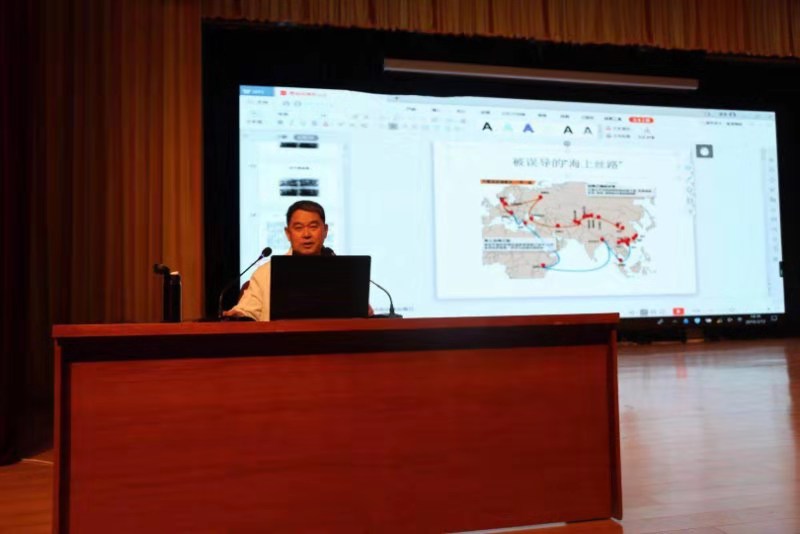 张树枫教授通过详实的影像资料和丰富的案例故事,结合青岛口设防与青岛建置、五四运动等重大历史事件,从中国古代海军文化发源地、“有海无防”的近代青岛港、新中国的海军城三个方面讲述了青岛地区琅琊文化、海军文化,讲述了青岛港发展变迁。他指出,青岛地区自古以来就是海防重地,早在春秋战国时期,琅琊就是中国最早的海军港口城市。近代以来,胶州湾先后被德国、日本侵占,成为帝国主义侵略中国的海军基地和桥头堡。青岛主权回归后,成为中国最重要的海军港。近代青岛港的历史就是中国“有海无防”的缩影与代表。新中国成立后,青岛集聚了中国最重要的海军部队、装备和人才,铸就了中国海军城的基础和灵魂,成为名副其实的海军之城、英雄之城。两个小时的报告,广大师生受益匪浅,详细地了解了海军史、青岛港史,进一步认识到旧中国劳动人民经历的屈辱与苦难,增强了爱国拥军的无限热情,纷纷表示要努力学习、提升本领,为祖国发展贡献力量。