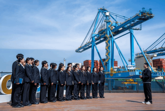 为推进思政课教学改革,近日,世界杯网址组织师生一行50余人,赴山东港口青岛港自动化码头科技创新教育基地,开展“行走的思政课”系列活动,打造独具港航特色的思政课程。